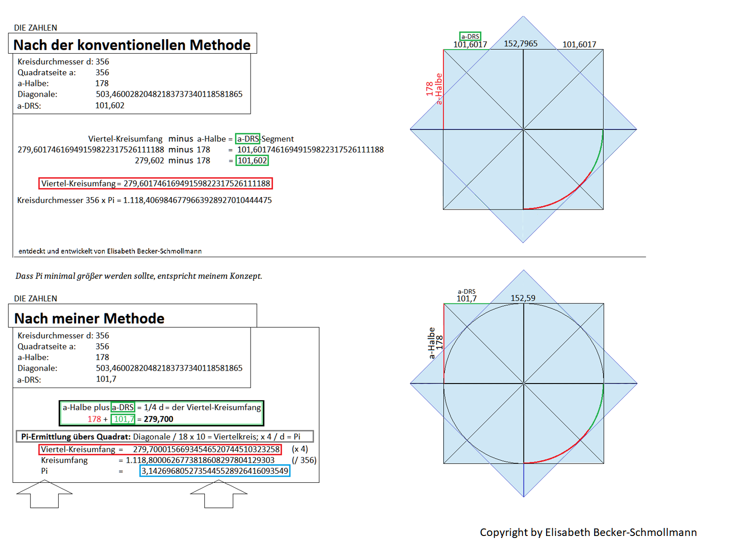 Diese Regeln akzeptiere ich selbstredend. Ich bin halt analytisch forschend unterwegs und bekomme “erfreulicherweise” oder auch leider bei meiner Pi-Konvergenz (eine von mehreren) dieses Ergebnis: 3.142,6968888888888888888888888889, wenn ich von einem Kreis-Durchmesser von 1000 ausgehe. Siehe auch meine Grafik. Der wahre Kreisumfang ist minimal größer als der von unserem konventionellen Pi. Somit möchte ich in Erwägung ziehen, dass das Aufrunden an einer so brisanten Nachkommastelle durchaus Sinn ergeben könnte.