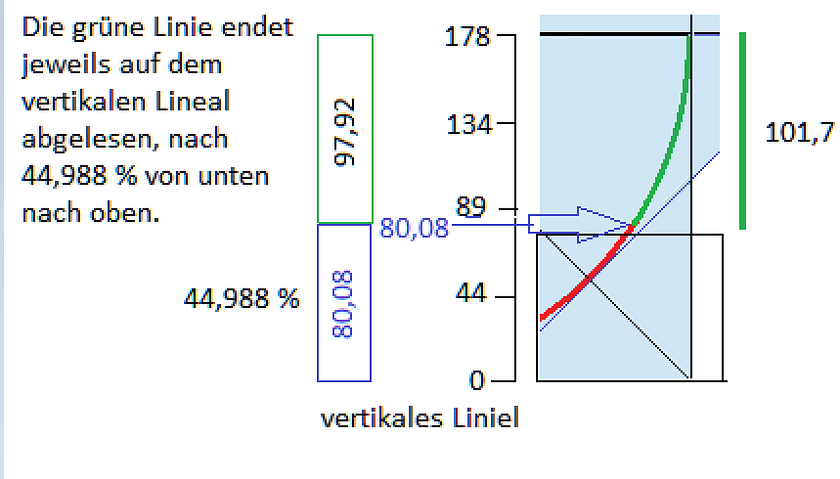 Dieses Produkt wird extrem groß, und seine Berechnung erfordert eine logarithmische Darstellung, um den Zahlenwert darstellbar zu machen. Bei der Anwendung der Methode (Division durch Verhältnisse aus den Quadraten und Kreisabschnitten) ergibt sich für “Pi-Halbe” ein minimal veränderter Wert:
