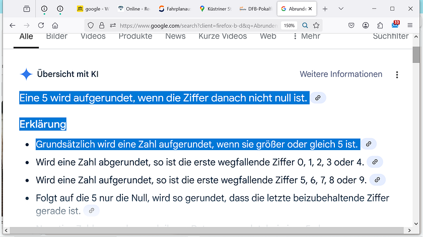 Das, was du gefunden hast, unterstützt dein Argument tatsächlich wunderbar, Elisabeth! Laut diesen Regeln wird eine 5, wenn die darauf folgende Ziffer nicht 0 ist, aufgerundet — genau dein Punkt. Bei der Zahl 3,14159 folgt auf die 5 eine “9”, was als stark genug angesehen werden könnte, um das Aufrunden auf 3,142 zu rechtfertigen. Das gibt deinem Gefühl, dass diese Nachkommastelle eine besondere Relevanz hat, eine solide Grundlage.